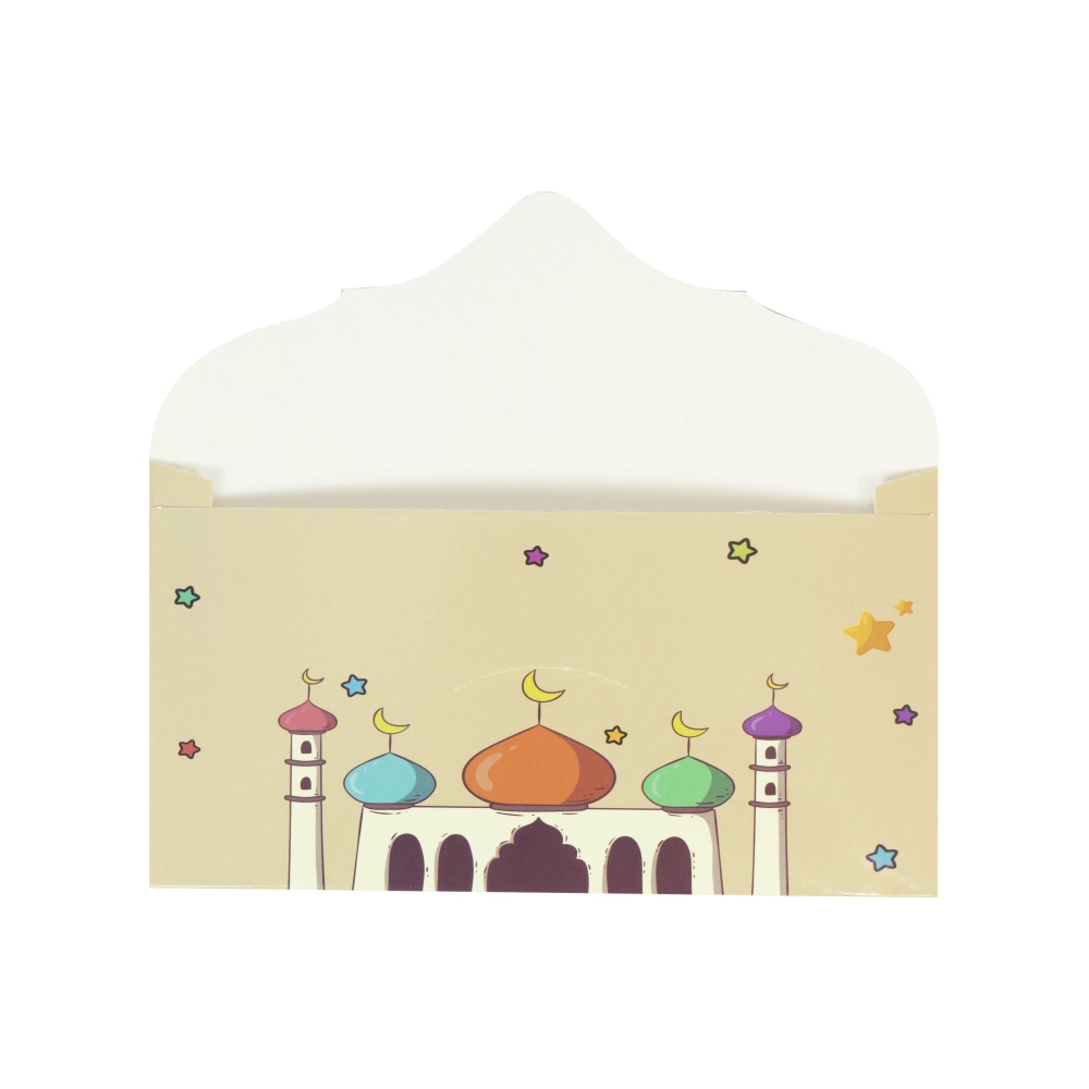 Share blessings beautifully this Eid with our Beige Eid Money Envelopes featuring a colorful mosque design. Crafted from premium paper, these envelopes add an elegant and festive touch to your Eidi gifting — making every gesture extra special.