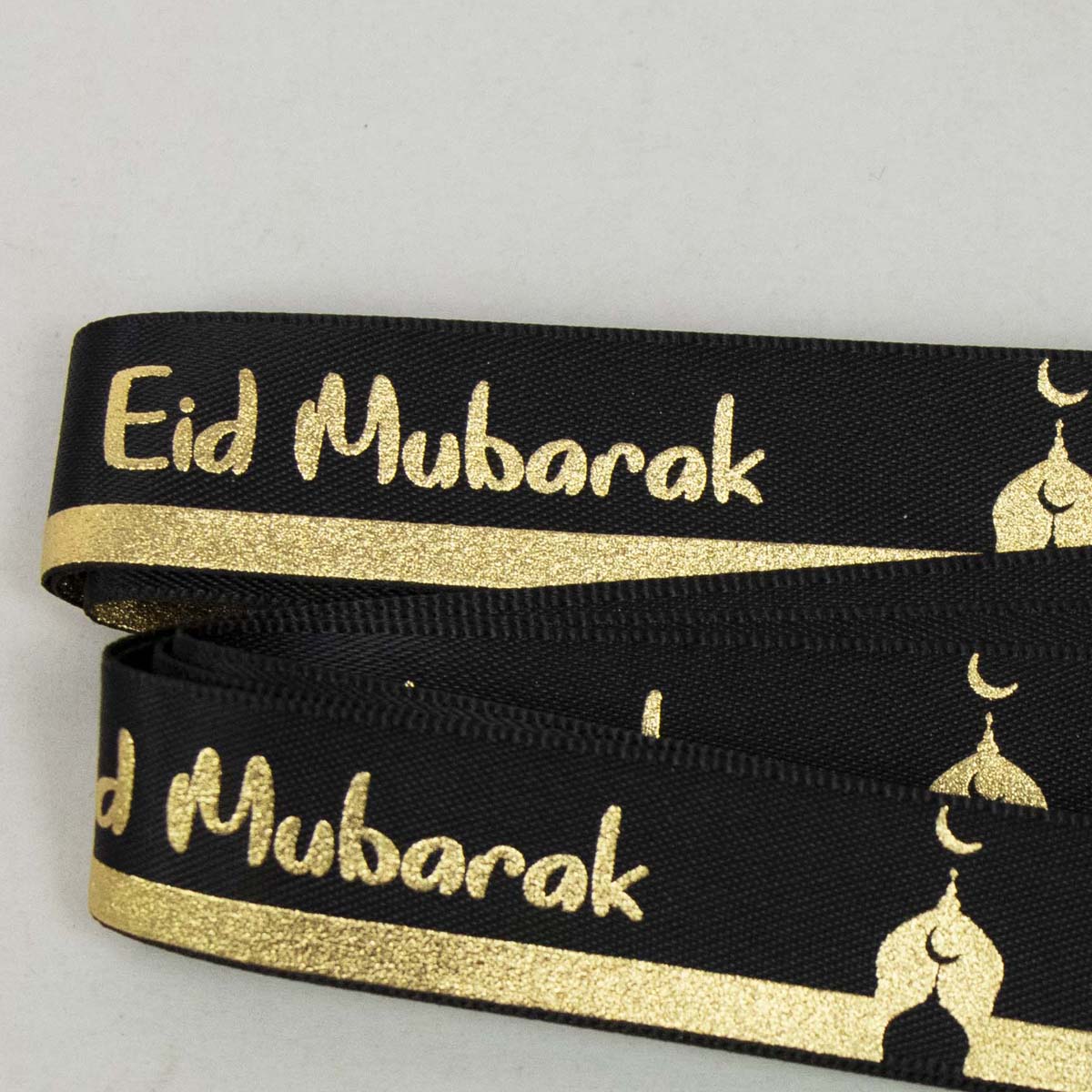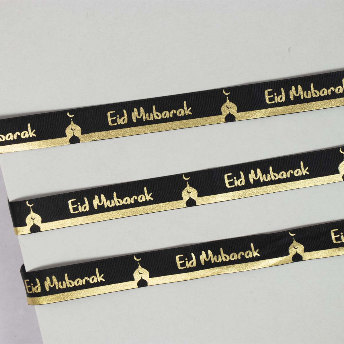 Wrap your Eid gifts with elegance using our Black and Gold Eid Mubarak Ribbon. Made from soft satin fabric with a shimmering gold foil script, it adds a luxurious and festive finish to every present.