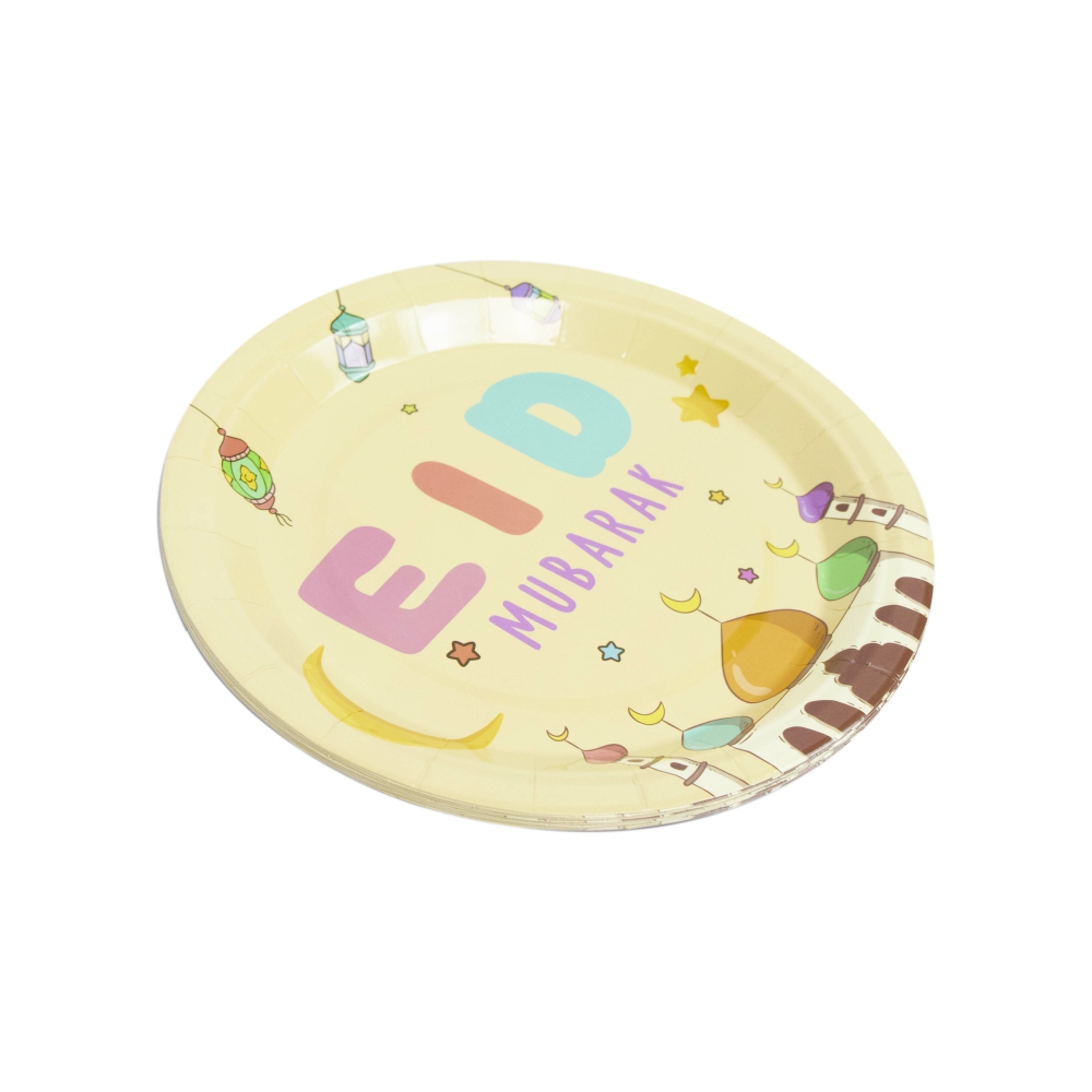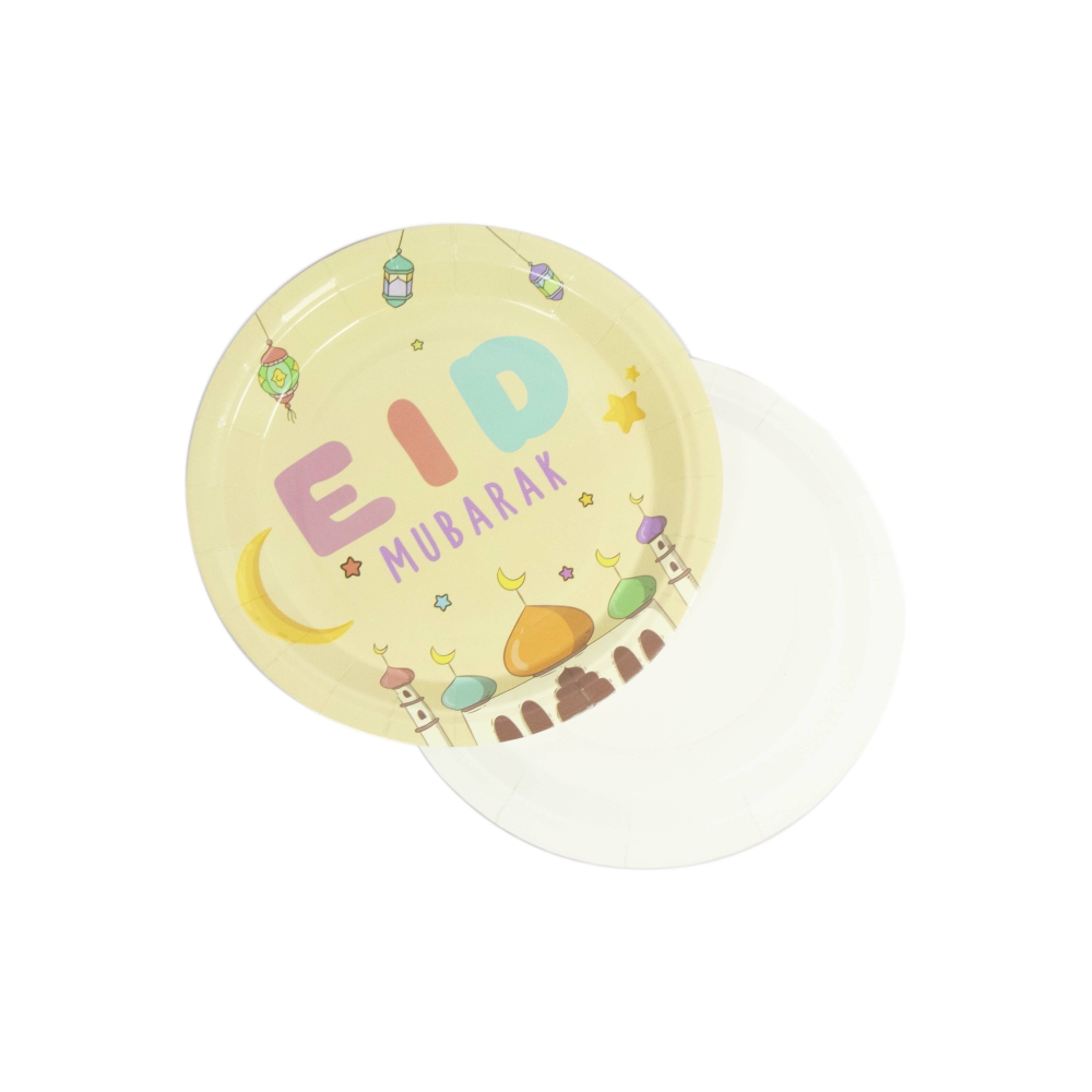 Celebrate Eid in style with our elegant Mosque-Themed Paper Plates. Featuring a soft beige background with delicate pink floral accents, these plates add a festive and graceful touch to your table setup — perfect for Eid gatherings, parties, and family feasts.