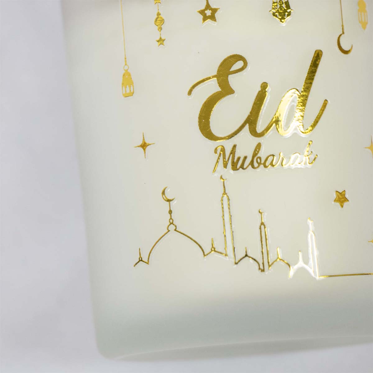Illuminate your Eid celebrations with the Eid Mubarak White Scented Candle, beautifully crafted in a sleek glass container. This elegant candle adds a warm, festive glow to any space while filling the room with a subtle, soothing fragrance. Perfect as a decorative centerpiece or a thoughtful gift, it brings charm and serenity to your Eid gatherings.